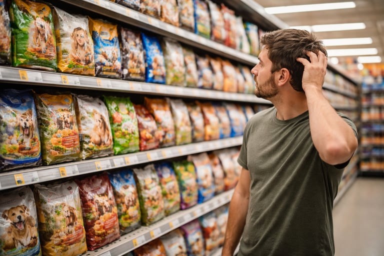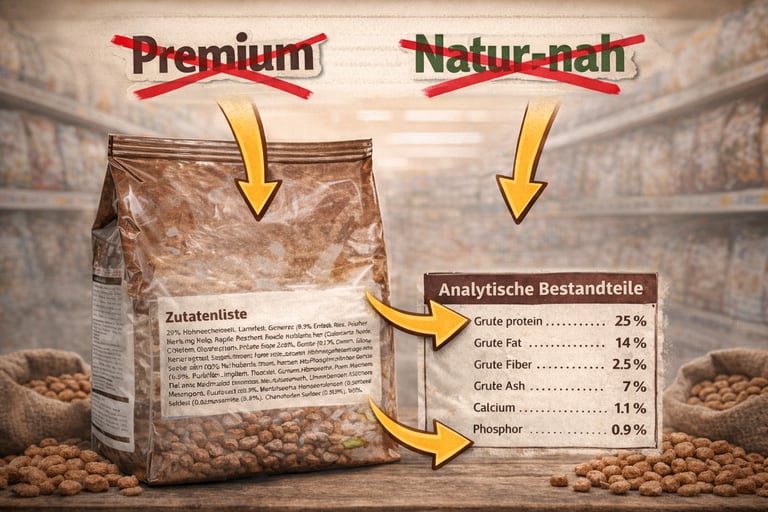 Warst du schon mal im Zoofachhandel und hast dich gefühlt wie bei einer Prüfung in Quantenphysik? "Ganzheitlich", "Premium", "Natur-nah", "Superfood", "Getreidefreie Formel" – die Marketingabteilungen der Futterriesen verdienen einen Oscar für ihre Fantasie. Du stehst vor einem Regal, das höher ist als du selbst, und fühlst dich einfach nur überfordert und unsicher.