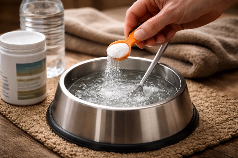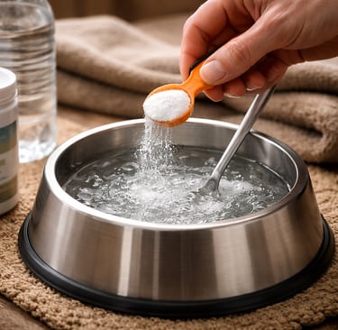 Dein Hund hat nicht nur Wasser verloren, sondern auch wichtige Elektrolyte (Salze). Wenn du ihm nur pures Wasser gibst, verdünnst du die verbliebenen Elektrolyte im Blut noch weiter. Das kann zu Krämpfen und weiterer Erschöpfung führen.